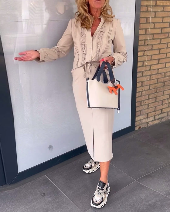 Esalta il tuo guardaroba con la gonna Amore, un capo versatile che unisce comfort e stile. Realizzata in tessuto morbido e leggero, questa gonna a tinta unita è perfetta per creare look casual ma chic. Il design semplice e la vestibilità rilassata la rendono ideale per ogni occasione, dalla giornata in ufficio a un'uscita informale. Un must-have per chi desidera essere alla moda senza rinunciare alla comodità.